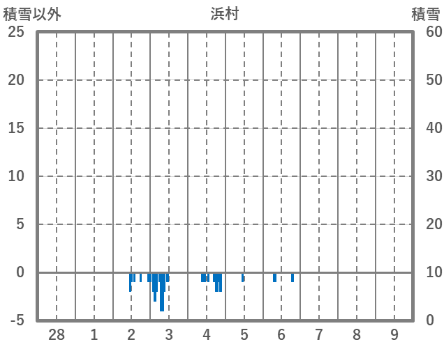 | 日 | 時 | 気温 | 降水 | 風向/風速 | 日照 | 積雪 | 降雪 |