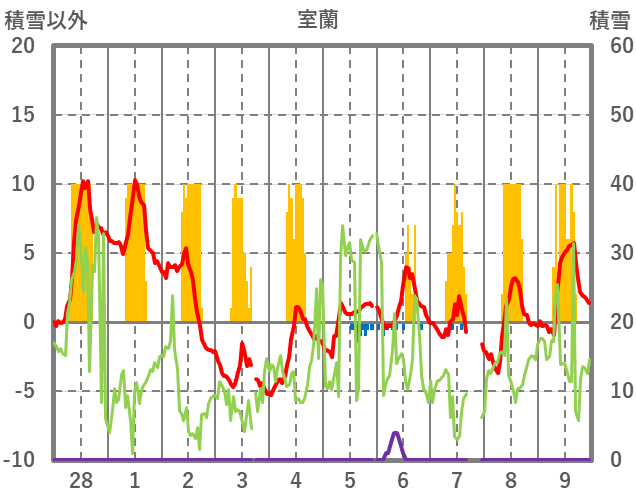 | 9 | -4.5 | 0 | NNW/6.5 | 60 | 0 | ||