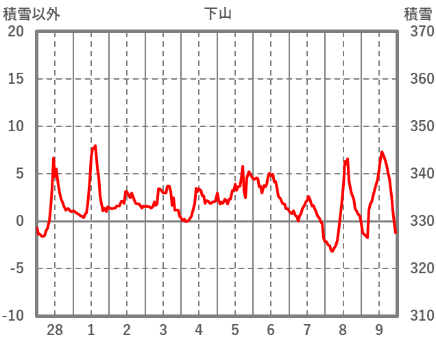 | 日 | 時 | 気温 | 降水 | 風向/風速 | 日照 | 積雪 | 降雪 |