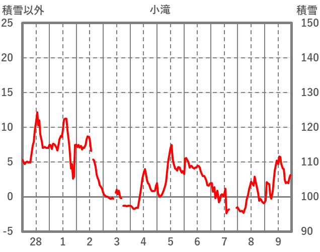 | 日 | 時 | 気温 | 降水 | 風向/風速 | 日照 | 積雪 | 降雪 |