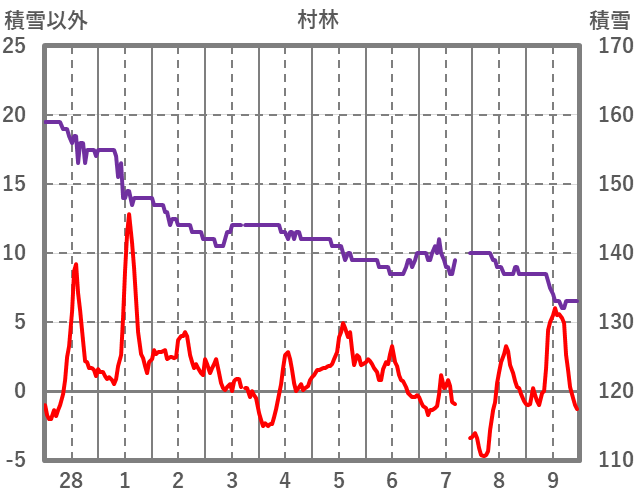 | 日 | 時 | 気温 | 降水 | 風向/風速 | 日照 | 積雪 | 降雪 |