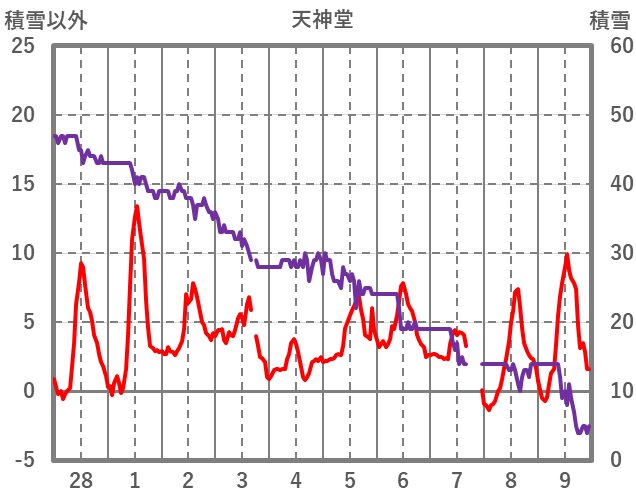 | 日 | 時 | 気温 | 降水 | 風向/風速 | 日照 | 積雪 | 降雪 |