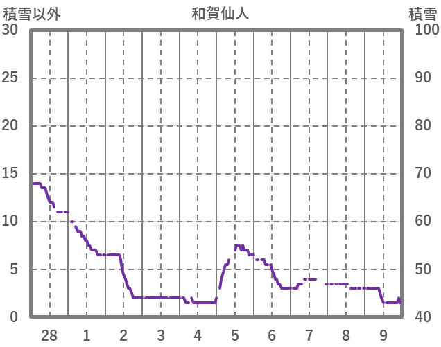 | 日 | 時 | 気温 | 降水 | 風向/風速 | 日照 | 積雪 | 降雪 |