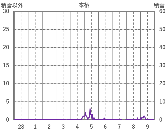 | 日 | 時 | 気温 | 降水 | 風向/風速 | 日照 | 積雪 | 降雪 |