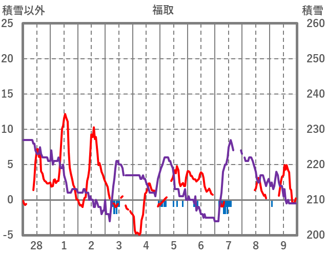 | 日 | 時 | 気温 | 降水 | 風向/風速 | 日照 | 積雪 | 降雪 |