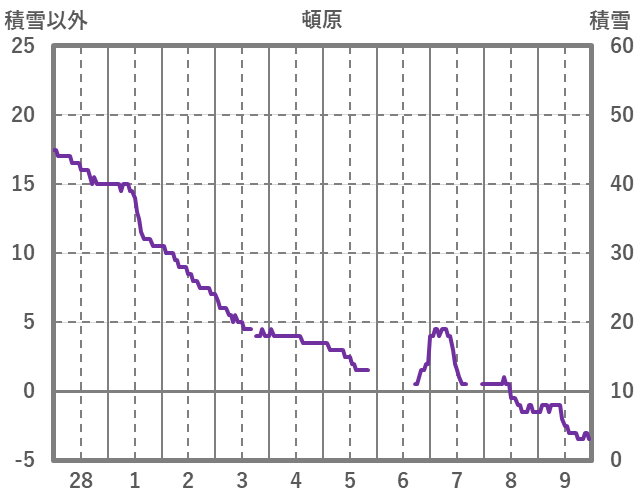| 日 | 時 | 気温 | 降水 | 風向/風速 | 日照 | 積雪 | 降雪 |