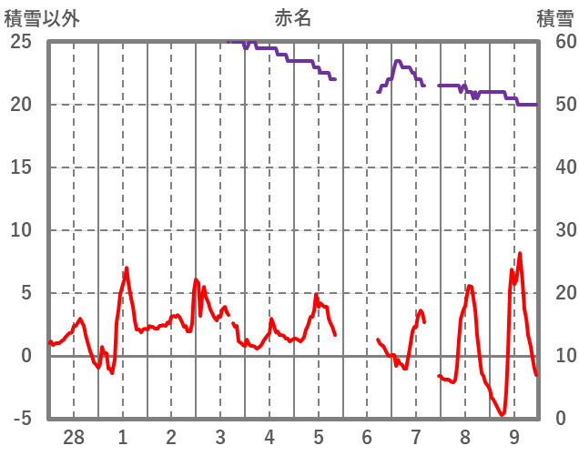 | 日 | 時 | 気温 | 降水 | 風向/風速 | 日照 | 積雪 | 降雪 |