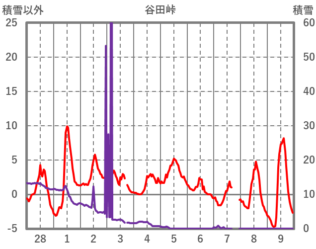 | 日 | 時 | 気温 | 降水 | 風向/風速 | 日照 | 積雪 | 降雪 |