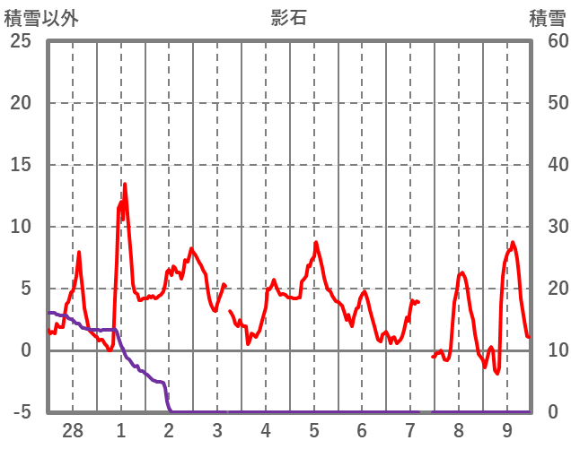 | 日 | 時 | 気温 | 降水 | 風向/風速 | 日照 | 積雪 | 降雪 |