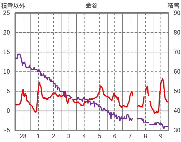 | 日 | 時 | 気温 | 降水 | 風向/風速 | 日照 | 積雪 | 降雪 |