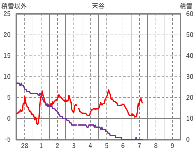 | 日 | 時 | 気温 | 降水 | 風向/風速 | 日照 | 積雪 | 降雪 |