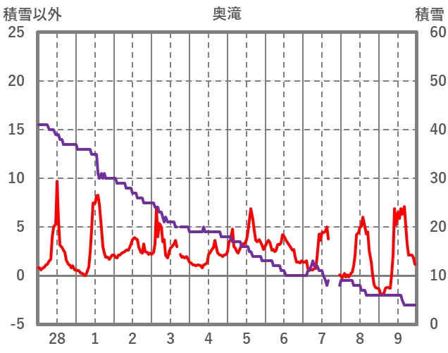 | 日 | 時 | 気温 | 降水 | 風向/風速 | 日照 | 積雪 | 降雪 |