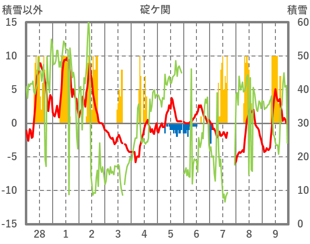 | 日 | 時 | 気温 | 降水 | 風向/風速 | 日照 | 積雪 | 降雪 |