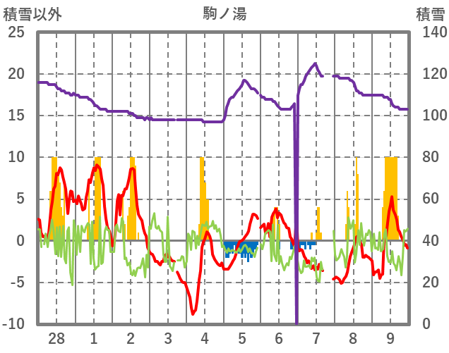 | 日 | 時 | 気温 | 降水 | 風向/風速 | 日照 | 積雪 | 降雪 |