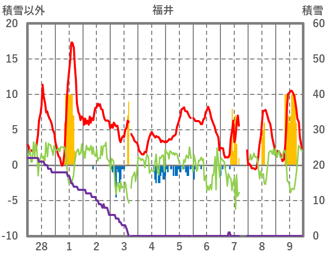 | 日 | 時 | 気温 | 降水 | 風向/風速 | 日照 | 積雪 | 降雪 |