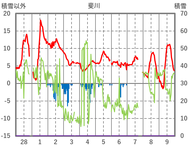 | 日 | 時 | 気温 | 降水 | 風向/風速 | 日照 | 積雪 | 降雪 |