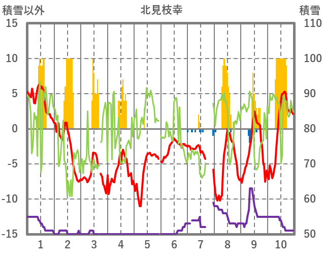 | 日 | 時 | 気温 | 降水 | 風向/風速 | 日照 | 積雪 | 降雪 |