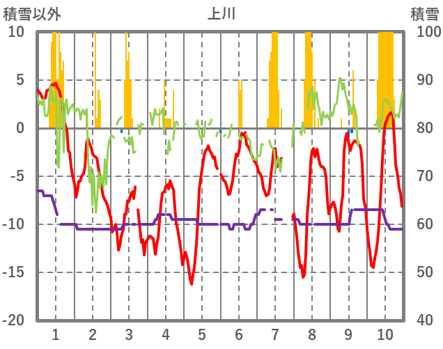 | 日 | 時 | 気温 | 降水 | 風向/風速 | 日照 | 積雪 | 降雪 |
