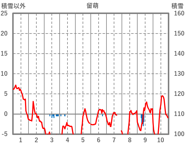 | 日 | 時 | 気温 | 降水 | 風向/風速 | 日照 | 積雪 | 降雪 |