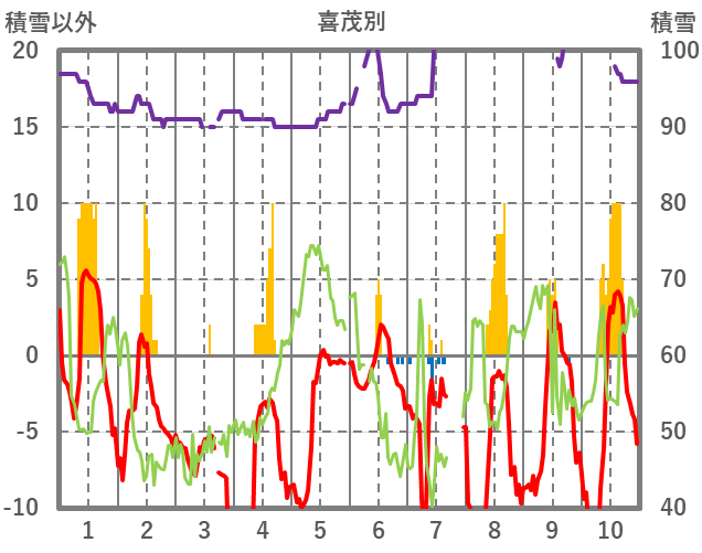 | 日 | 時 | 気温 | 降水 | 風向/風速 | 日照 | 積雪 | 降雪 |