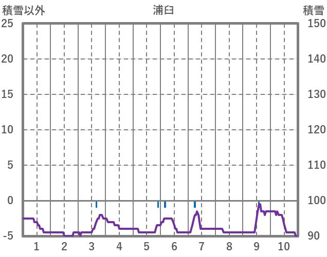 | 日 | 時 | 気温 | 降水 | 風向/風速 | 日照 | 積雪 | 降雪 |