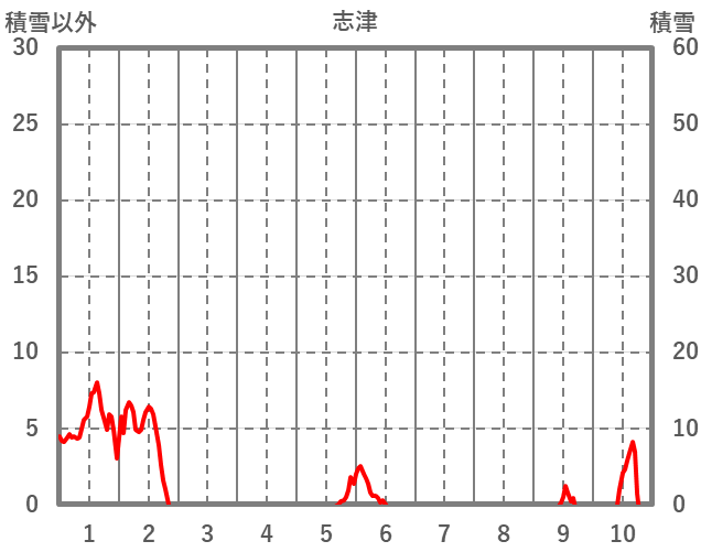 | 日 | 時 | 気温 | 降水 | 風向/風速 | 日照 | 積雪 | 降雪 |