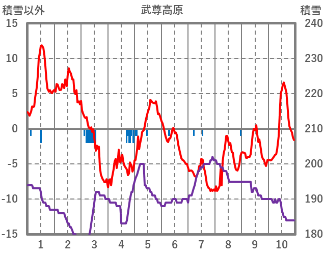 | 日 | 時 | 気温 | 降水 | 風向/風速 | 日照 | 積雪 | 降雪 |
