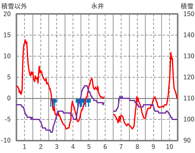 | 日 | 時 | 気温 | 降水 | 風向/風速 | 日照 | 積雪 | 降雪 |