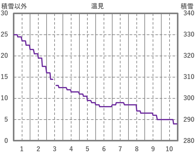 | 日 | 時 | 気温 | 降水 | 風向/風速 | 日照 | 積雪 | 降雪 |