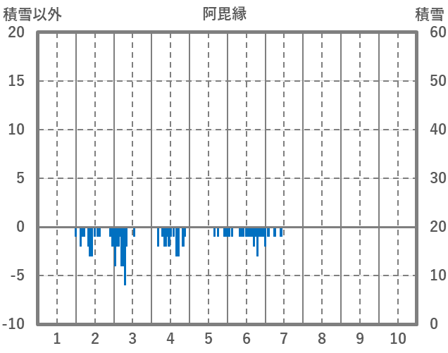 | 日 | 時 | 気温 | 降水 | 風向/風速 | 日照 | 積雪 | 降雪 |