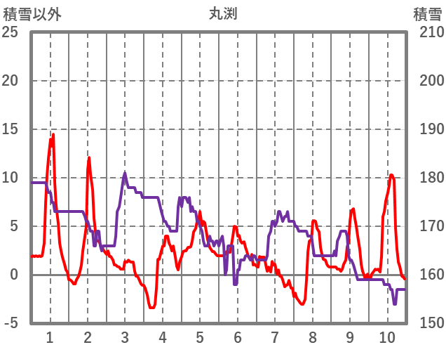 | 日 | 時 | 気温 | 降水 | 風向/風速 | 日照 | 積雪 | 降雪 |