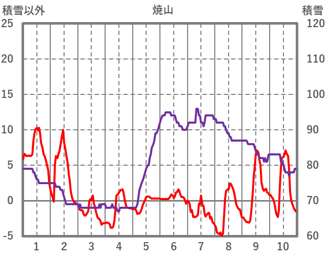 | 日 | 時 | 気温 | 降水 | 風向/風速 | 日照 | 積雪 | 降雪 |