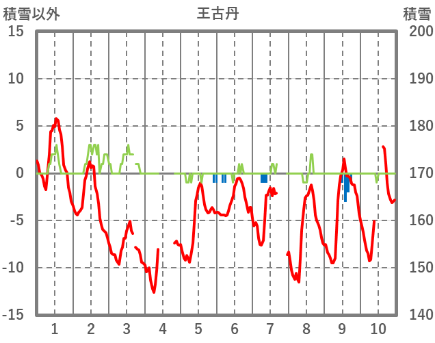 | 日 | 時 | 気温 | 降水 | 風向/風速 | 日照 | 積雪 | 降雪 |