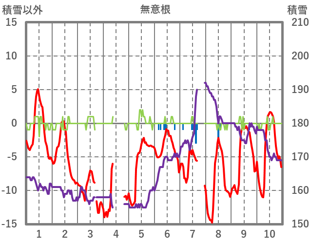 | 日 | 時 | 気温 | 降水 | 風向/風速 | 日照 | 積雪 | 降雪 |