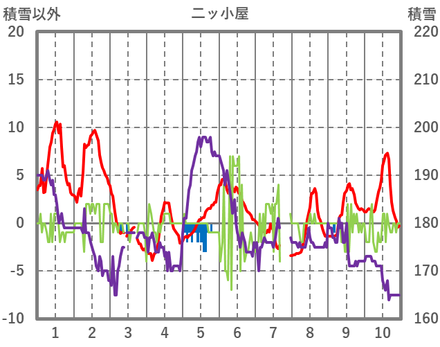 | 日 | 時 | 気温 | 降水 | 風向/風速 | 日照 | 積雪 | 降雪 |