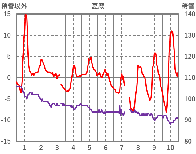 | 日 | 時 | 気温 | 降水 | 風向/風速 | 日照 | 積雪 | 降雪 |