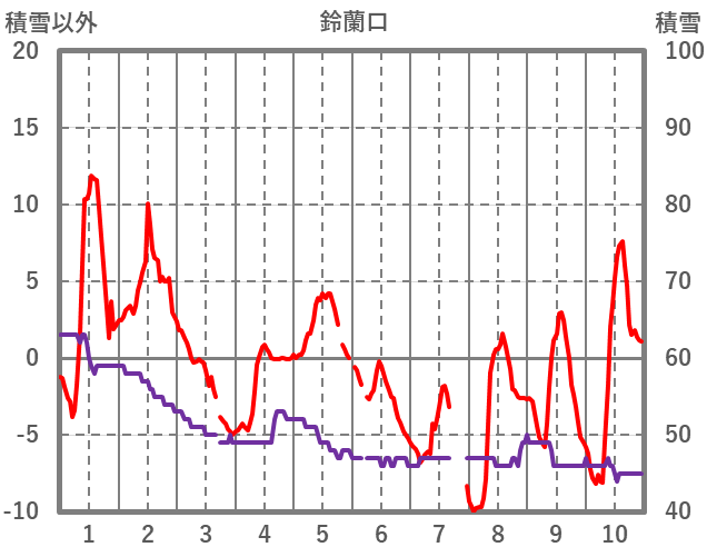 | 日 | 時 | 気温 | 降水 | 風向/風速 | 日照 | 積雪 | 降雪 |