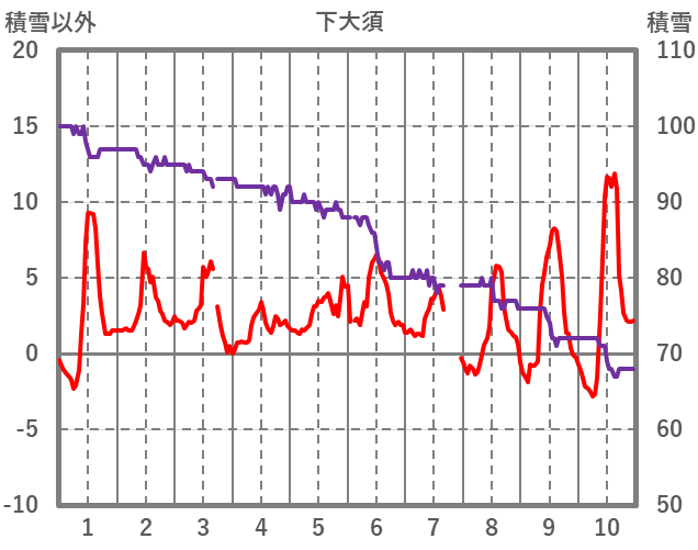 | 日 | 時 | 気温 | 降水 | 風向/風速 | 日照 | 積雪 | 降雪 |