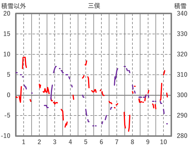 | 日 | 時 | 気温 | 降水 | 風向/風速 | 日照 | 積雪 | 降雪 |