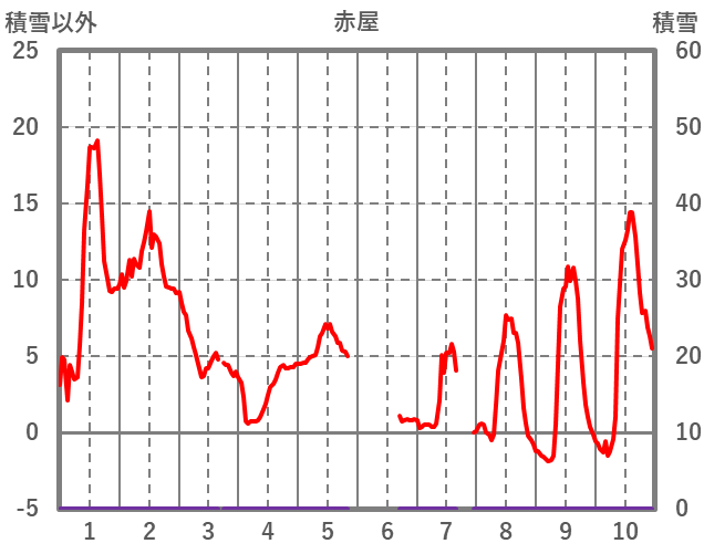 | 日 | 時 | 気温 | 降水 | 風向/風速 | 日照 | 積雪 | 降雪 |