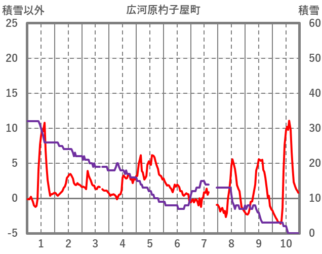 | 日 | 時 | 気温 | 降水 | 風向/風速 | 日照 | 積雪 | 降雪 |