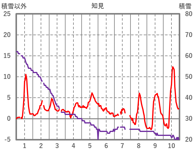 | 日 | 時 | 気温 | 降水 | 風向/風速 | 日照 | 積雪 | 降雪 |