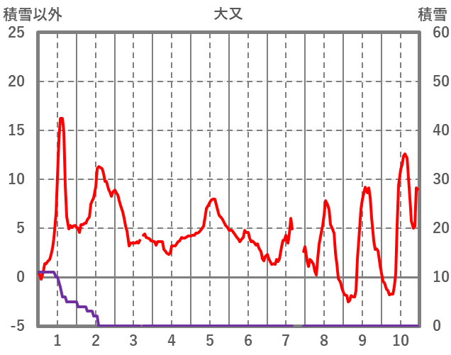 | 日 | 時 | 気温 | 降水 | 風向/風速 | 日照 | 積雪 | 降雪 |