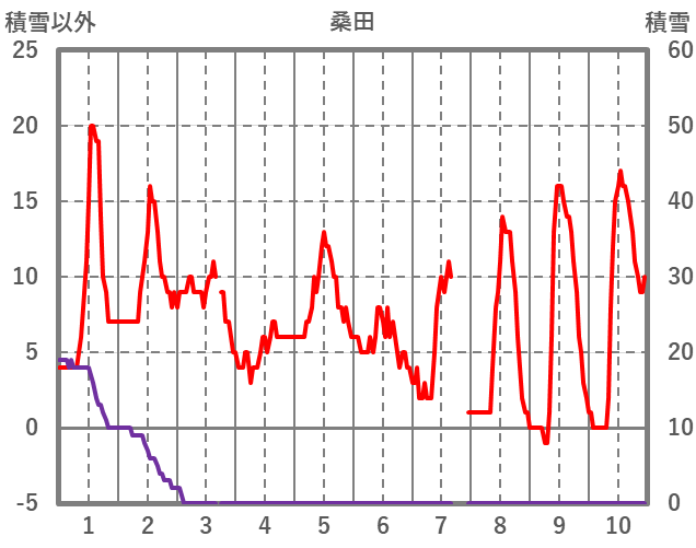 | 日 | 時 | 気温 | 降水 | 風向/風速 | 日照 | 積雪 | 降雪 |
