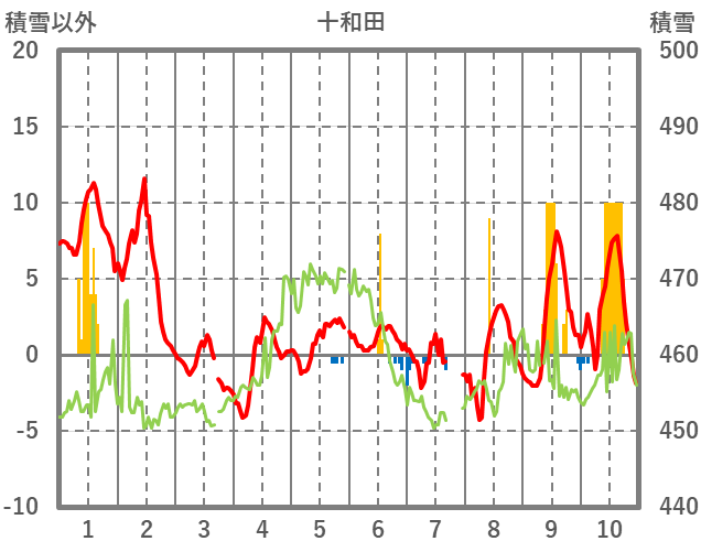 | 日 | 時 | 気温 | 降水 | 風向/風速 | 日照 | 積雪 | 降雪 |