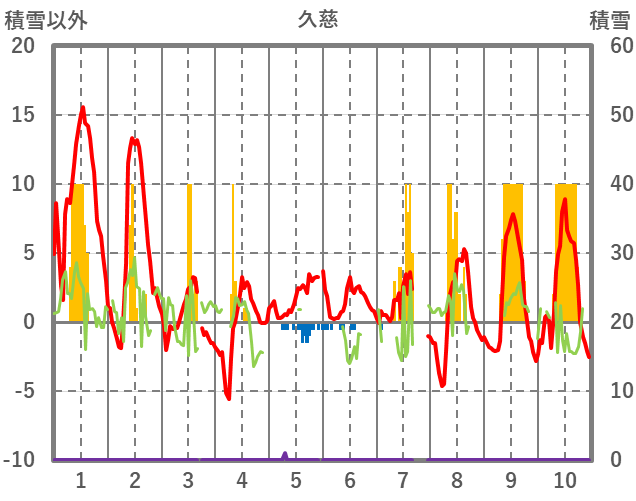 | 日 | 時 | 気温 | 降水 | 風向/風速 | 日照 | 積雪 | 降雪 |