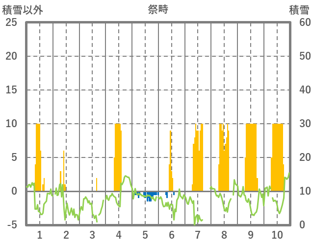 | 日 | 時 | 気温 | 降水 | 風向/風速 | 日照 | 積雪 | 降雪 |