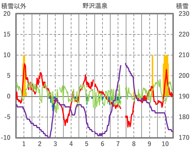 | 日 | 時 | 気温 | 降水 | 風向/風速 | 日照 | 積雪 | 降雪 |