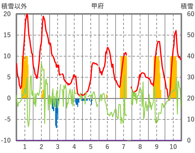 | 日 | 時 | 気温 | 降水 | 風向/風速 | 日照 | 積雪 | 降雪 |