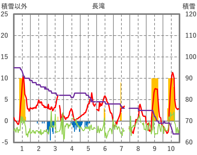| 日 | 時 | 気温 | 降水 | 風向/風速 | 日照 | 積雪 | 降雪 |